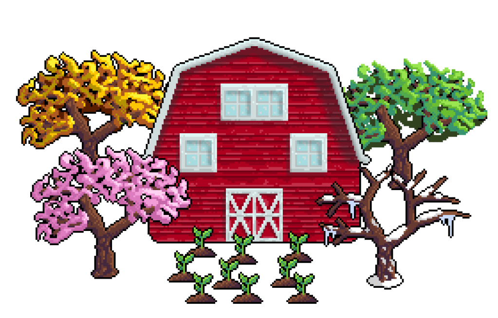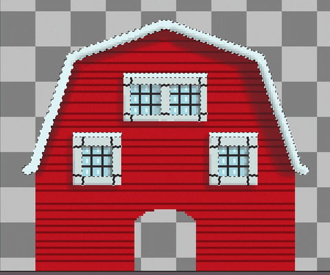 Building the barn was a bit discouraging at first. Rendering the red and white wood, the glass, and the shading was quite difficult. As with real life objects, pixel art objects are made up of materials that have their own textures. Through tiny pixels, it’s actually quite difficult to render real-world materials convincingly.