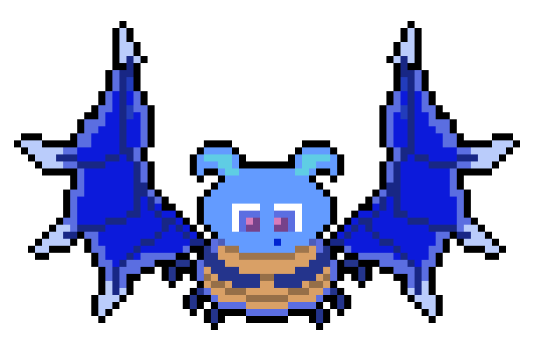Meet Goop. He’s a blue beetle guy, but with eight appendages. I tried giving him wings: