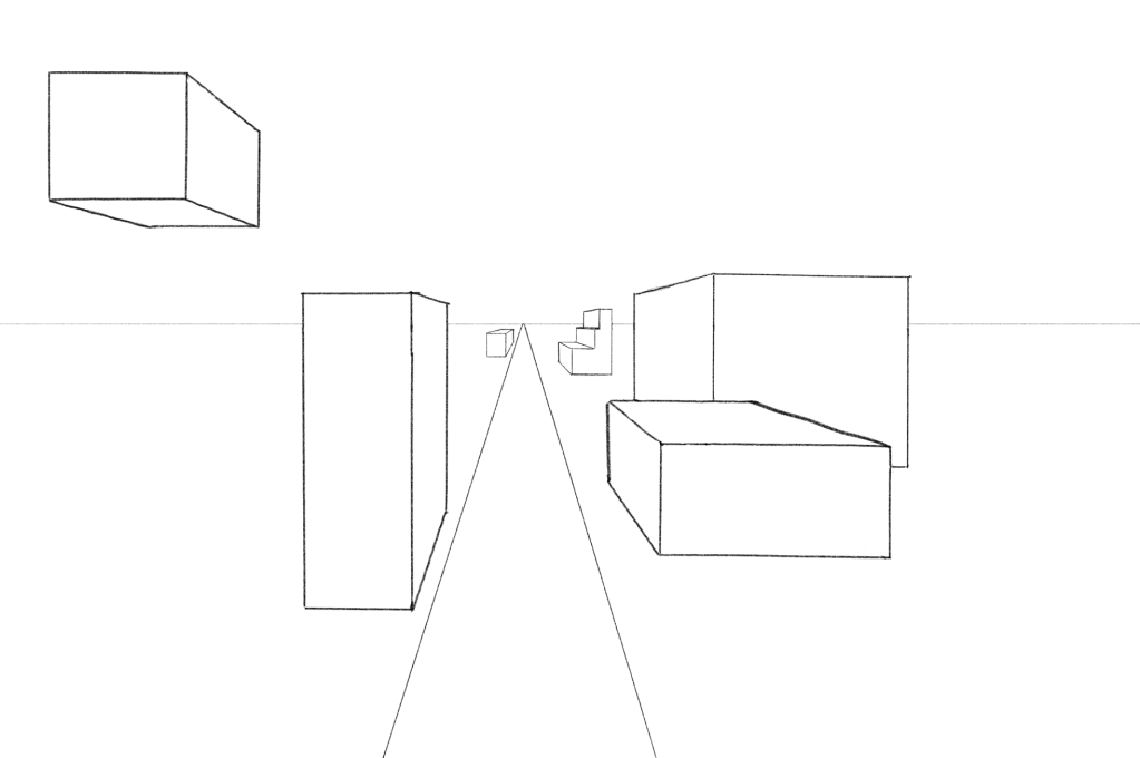 Simultaneously, I’ll still work on pixel art, and hopefully traditional art technique as well. Although I haven’t posted much about it, I’ve been delving into linear perspective recently. I’ve tried my hand at drawing some boxes using one point and two point linear perspective. Here are some digital drawings I made from two weeks ago: