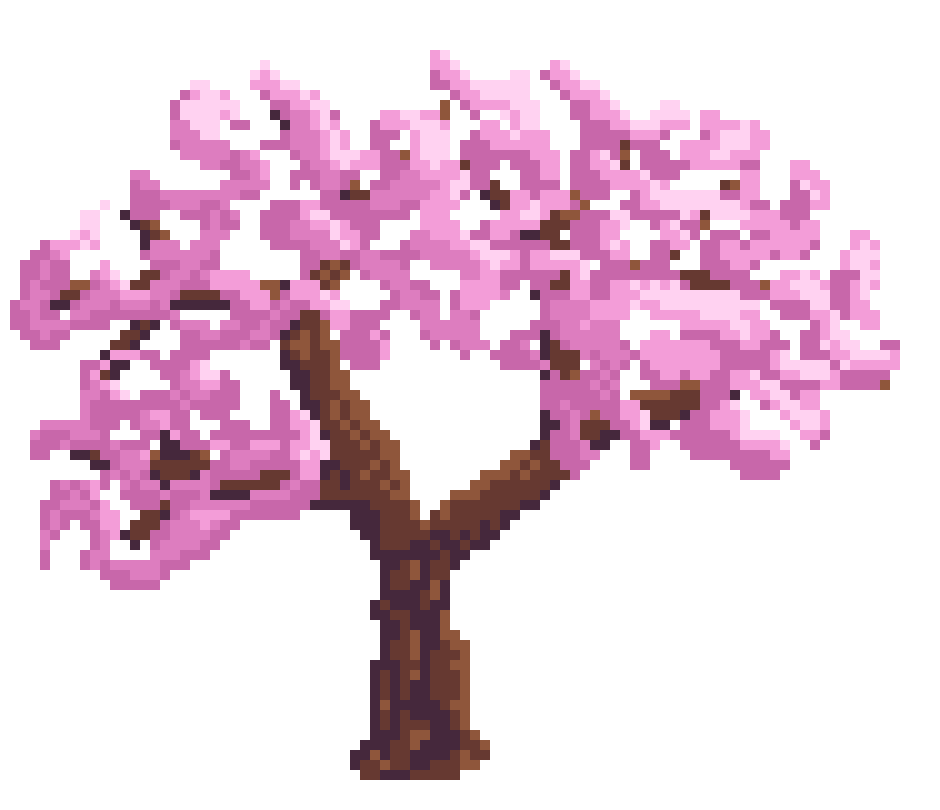 After making a winter tree, I had absolutely no choice but to make one tree for each season. This was simpler than you’d imagine. I was able to copy and paste the same trunk for each tree, and only draw the leaves once. Then, I could change the color of the leaves depending on the season! For instance, here’s a spring tree (it’s pink hue strikes me specifically as a dogwood tree):